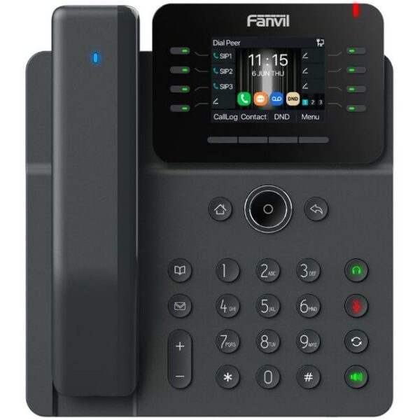Fanvil V62 Pro is a refined, high-performance prime business phone. It features a 2.8-inch (320×240) HD color LCD screen, supports 12 SIP lines, and 6-way audioconference. With rich functions such as HD audio, dual Gigabit ports, andintegrated PoE, and matches with Bluetooth wireless handset, which can meetdifferent enterprise application scenarios and provide users with excellentinteractive experience and comfortable instant messaging services.