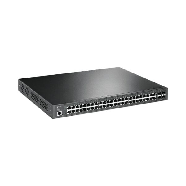 48× Gigabit 802.3af/at PoE+ ports and 4× Gigabit SFP slots384 W total PoE budget with up to 30 W PoE output per port*Centralized cloud management via the web or the Omada app†Standalone management via web, CLI, SNMP, and RMONStatic Routing helps route internal traffic for higher efficiencyVLAN, ACL, QoS, and IGMP SnoopingERPS supports rapid protection and recovery in a ring topologyDurable metal casing and rackmountable design