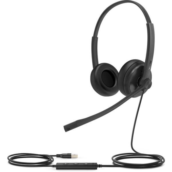 Wired Binaural headsetUSB-A Connection (for PC)Hand-held call controllerLeatherette ear cushionsCompatible with Yealink phones with USB-A portCompatible with Microsoft Teams